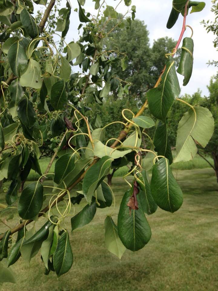 curly pear tree leaves