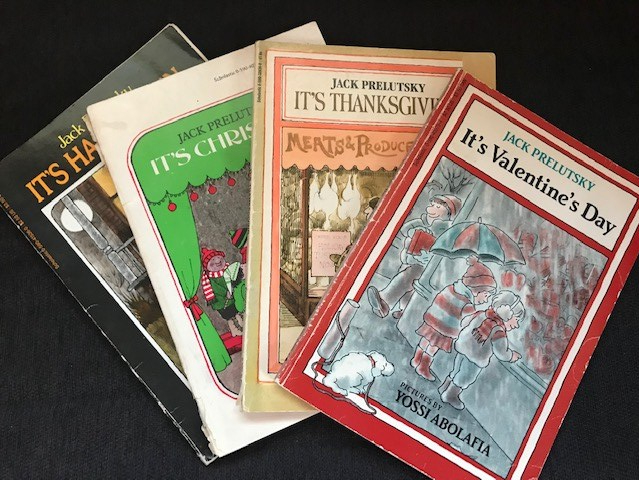 Instead, I turned to Jack Prelutsky who had a series of holiday themed poem books in the early 80’s. There seems to always be a holiday looming ahead of students during the school year that is often anticipated with great enthusiasm. So, being that the books were small (they fit in my sub bag) and the poems were short (saving time during a busy school day), I often turned to one to bridge a transition or fill in a gap. I used these books often with my writer’s circle students as well.