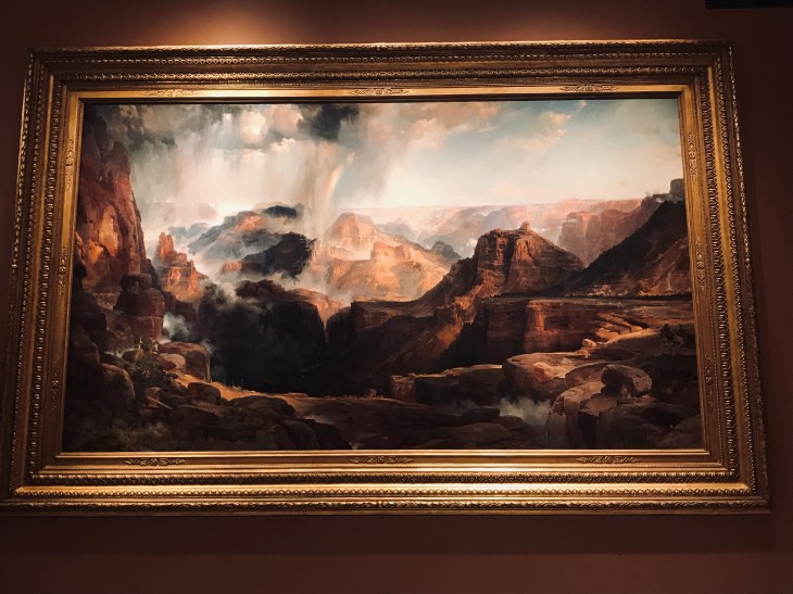 There were huge paintings that took up entire walls. Three really impressive ones were of our vast, untouched landscapes of our past. Yellowstone and the Grand Canyon were so absorbing, you felt transported in time and place when looking at them.