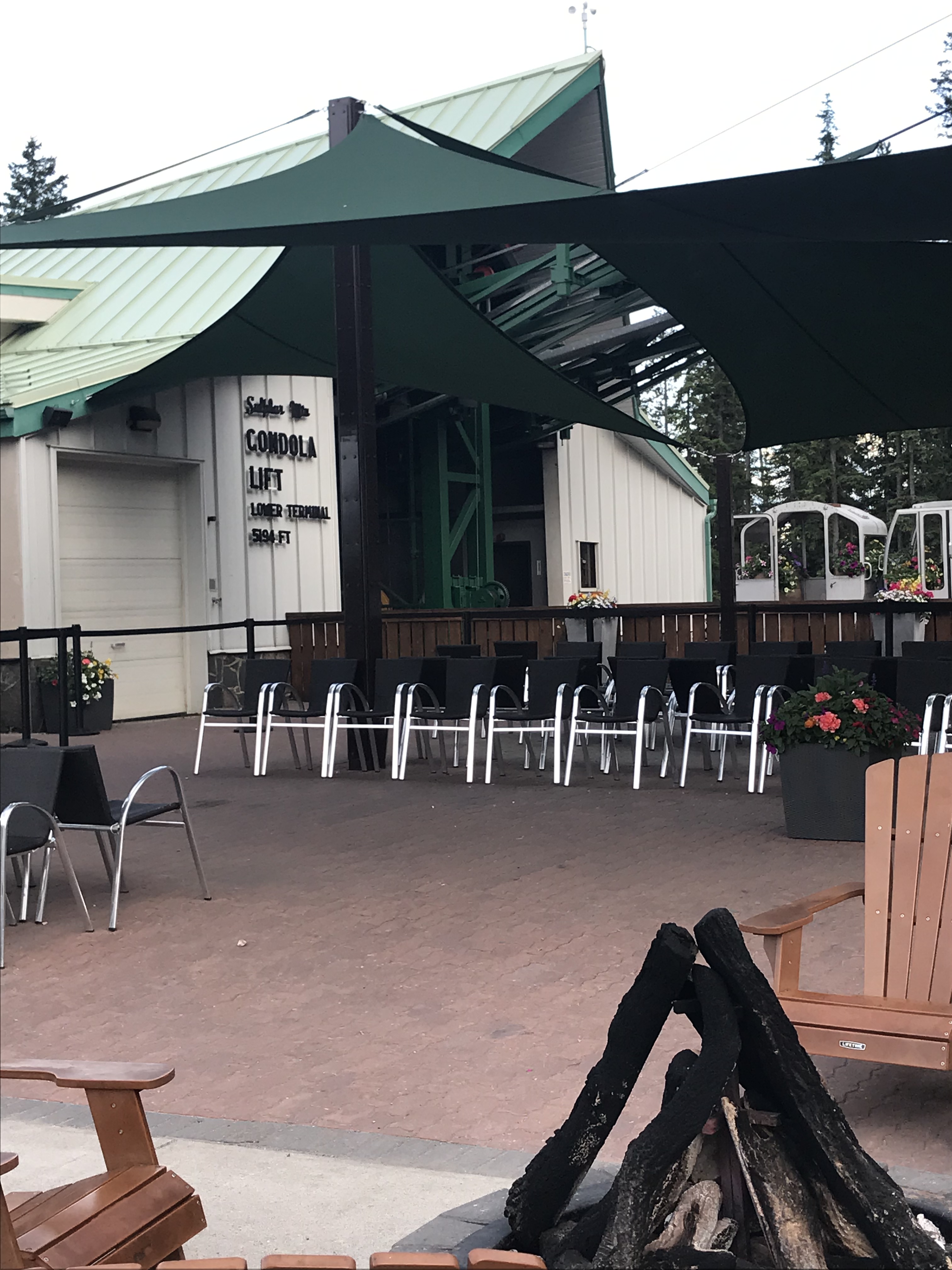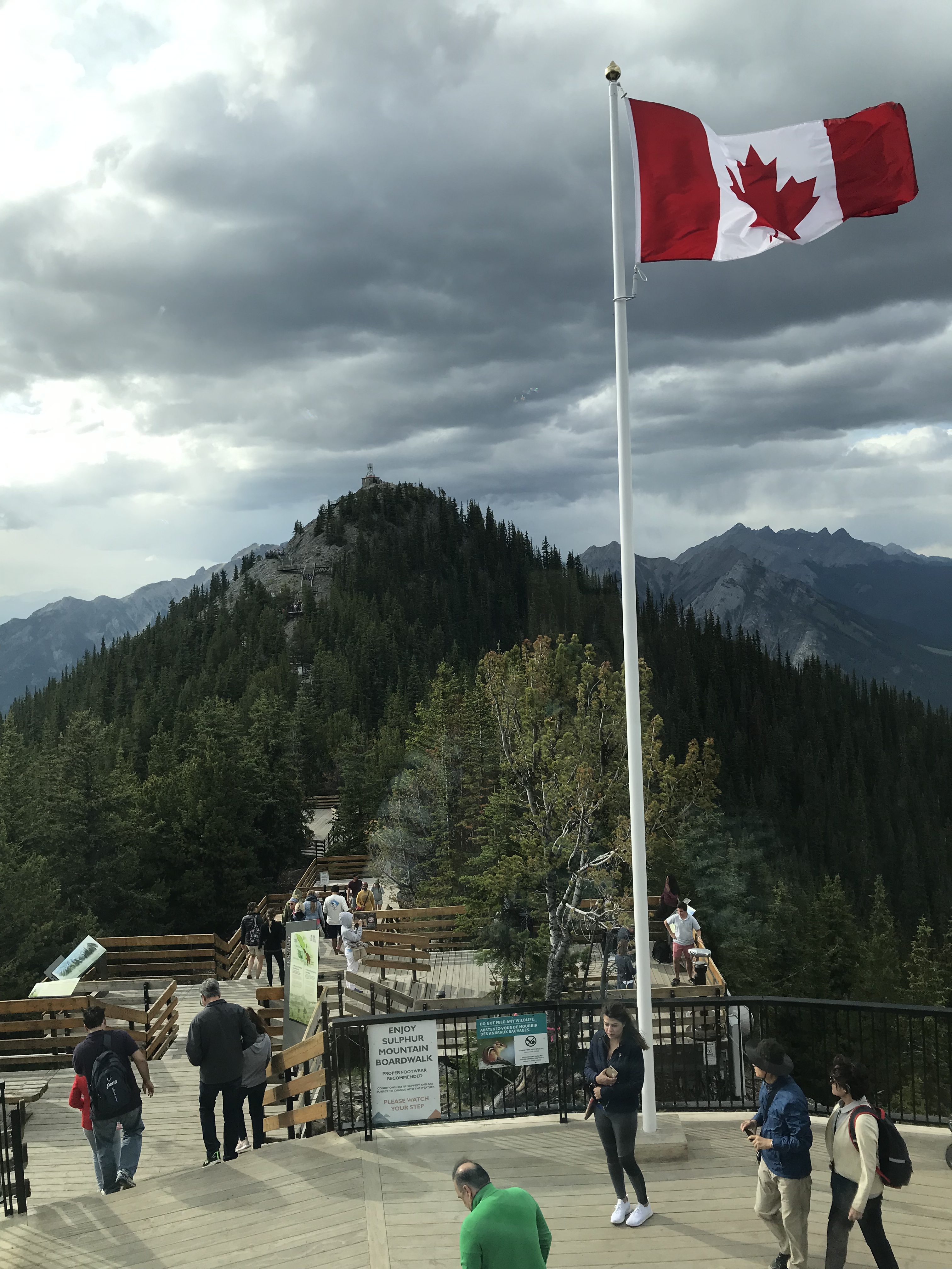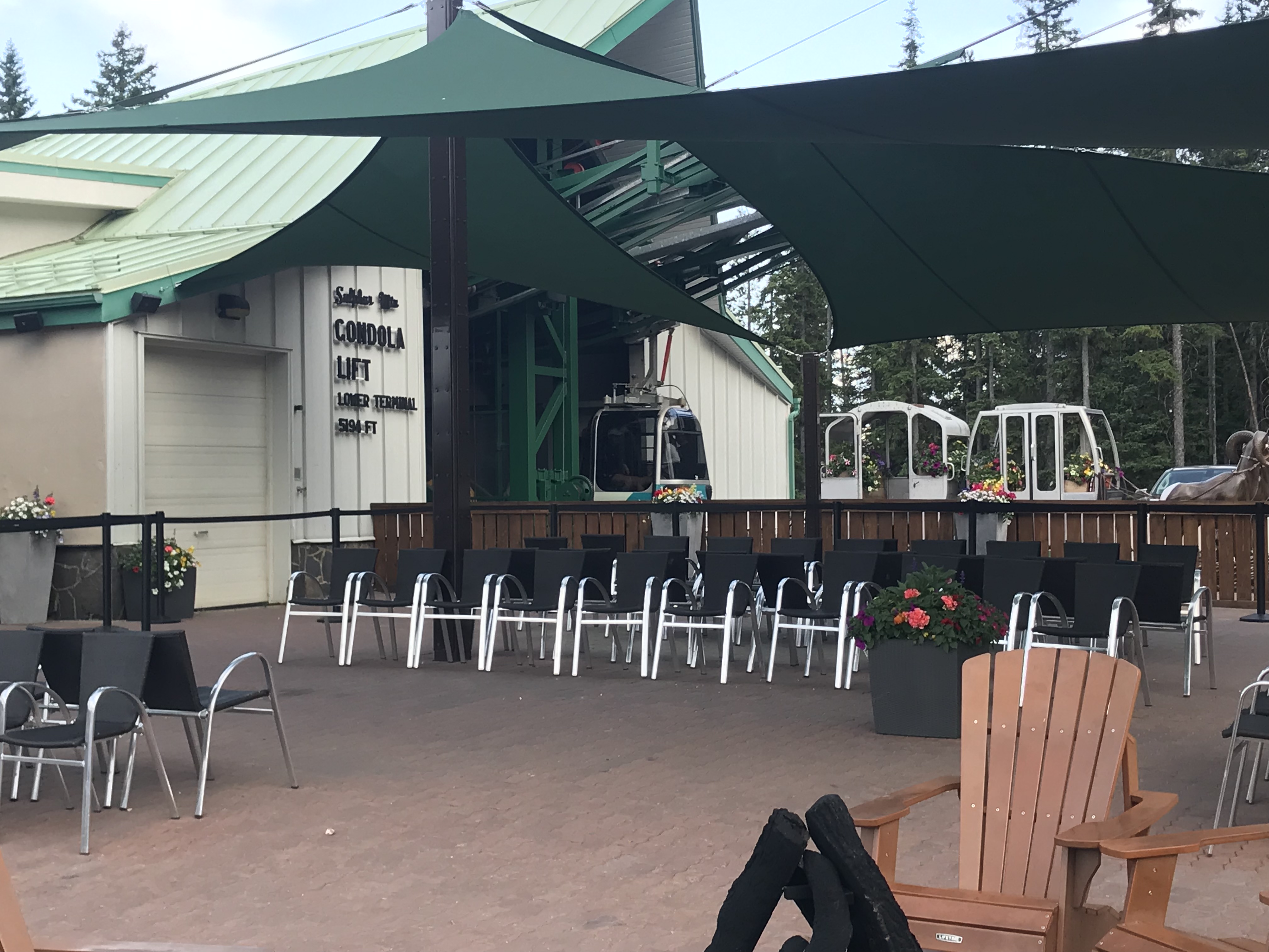 Deck of the interpretive center at the end of the Gondola. You can then hike to the comic Ray station seen on the peak in the background.