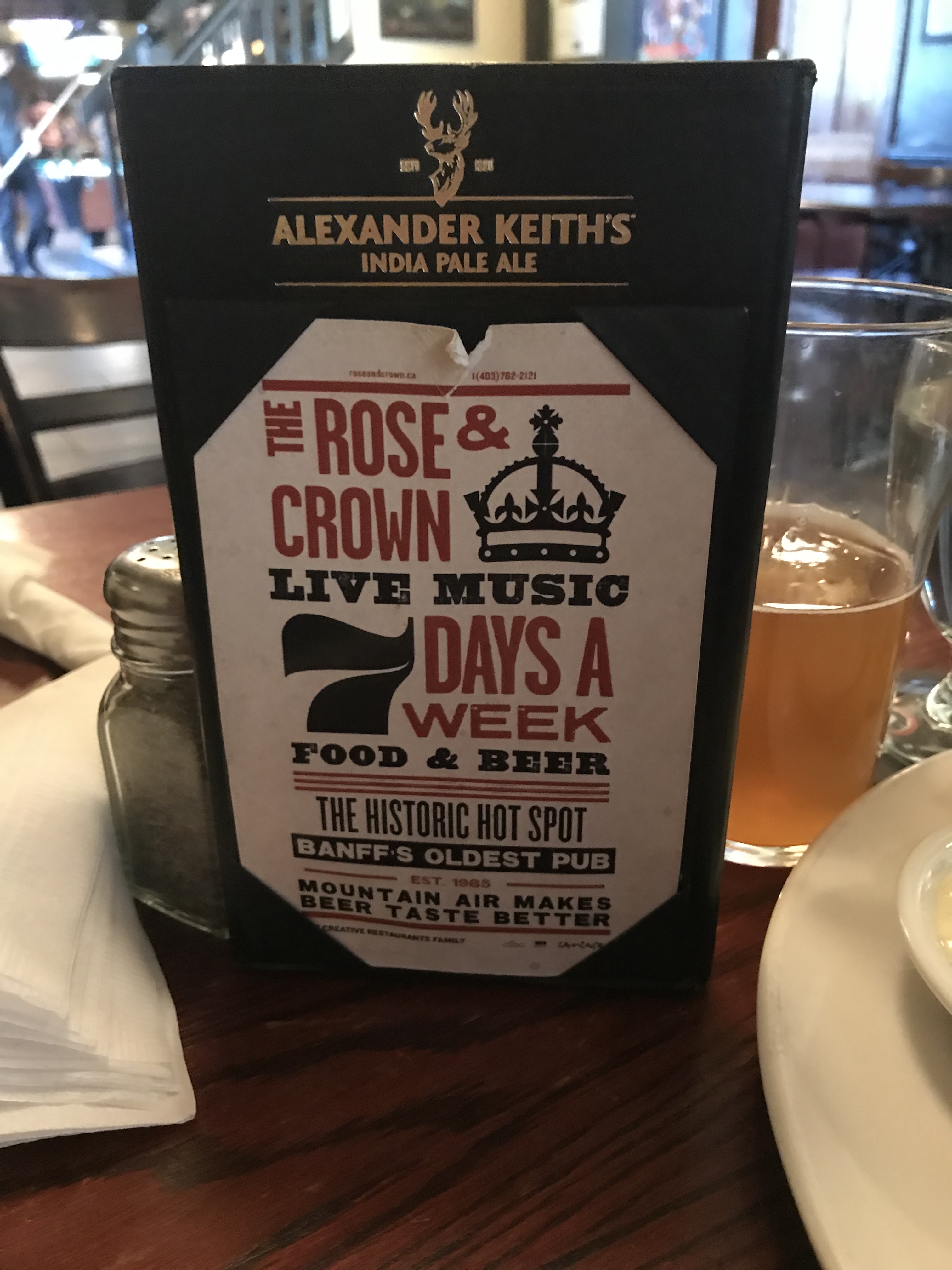 I immediately remembered the name because I read about it on a piece of promo literature we picked up at the Banff area tourism office. Crown and Rose was listed as a place the locals go! And, now, a semi- local guy (Calgary is a couple of hours away) was recommending it.