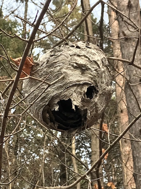On the way back, I spied a paper wasp nest hanging from a tree near the edge of our road. These intrigue me, so I just had to stop and get a few photos. Thankfully, the wasps were long gone.