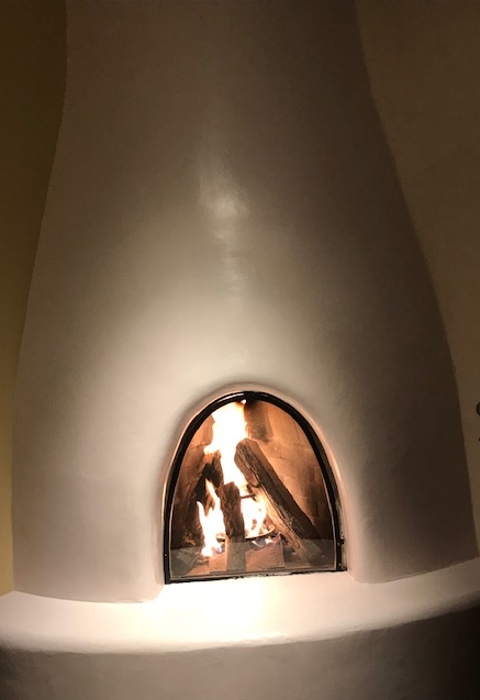 Adobe Fireplace in Santa Fe at our Hotel last February. © Carol Labuzzetta, 2020