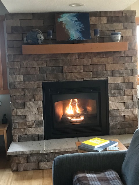 The fireplace has been turned on! © Carol Labuzzetta, 2020.