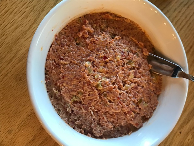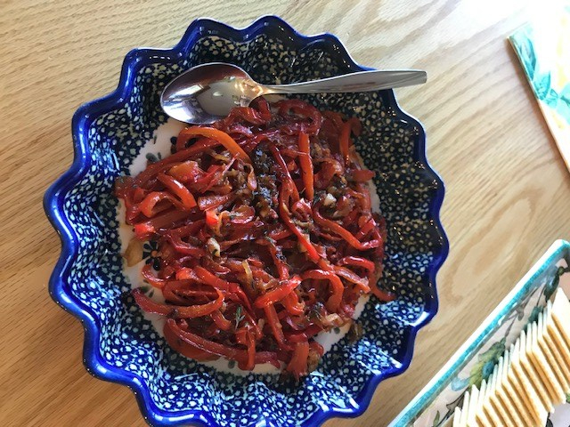 Italian Feast. Nduja spread, roasted red pepper salad and bread. © Carol Labuzzetta, 2020;