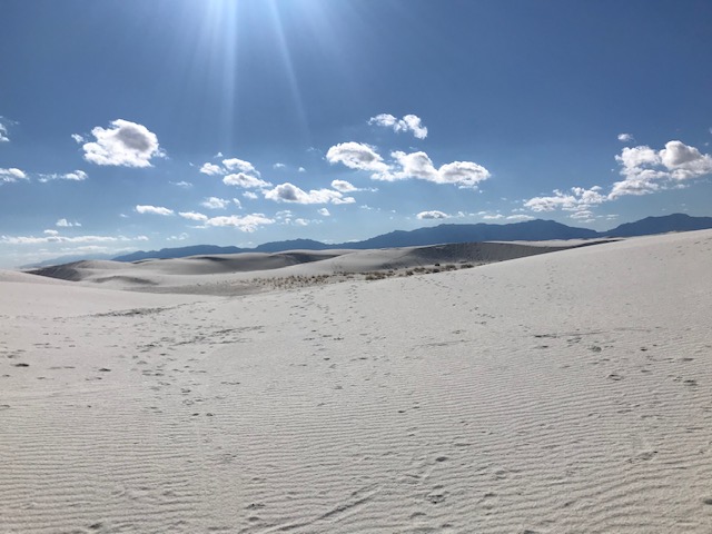 Perhaps you can start to see where I am going with this! White Sands National Park is just that – a unique landscape and ecosystem that exists on white sand! It is stunning! And, the white sand is so white it looks like a snowy landscape! In looking at the photos on my calendar for December 2020, I noted that the landscapes were virtually indistinguishable but included both our snowy yard last winter and a shot from White Sands last February.