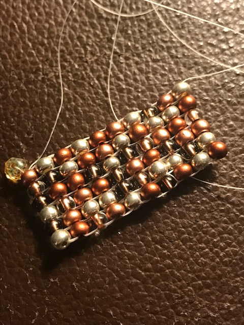 My other distraction is a singular one. I brought a small beading project. I am learning a brick stitch done with seed beads. I completed one over the Christmas holiday week. Now, I want to improve my technique. So, I am making another. Already, it is going much more easily.