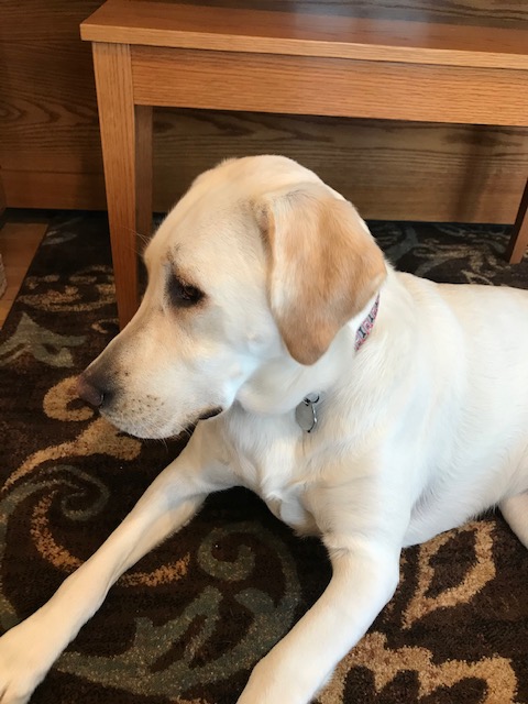 Molly, our 80 pound, yellow Labrador Retriever on the home team?