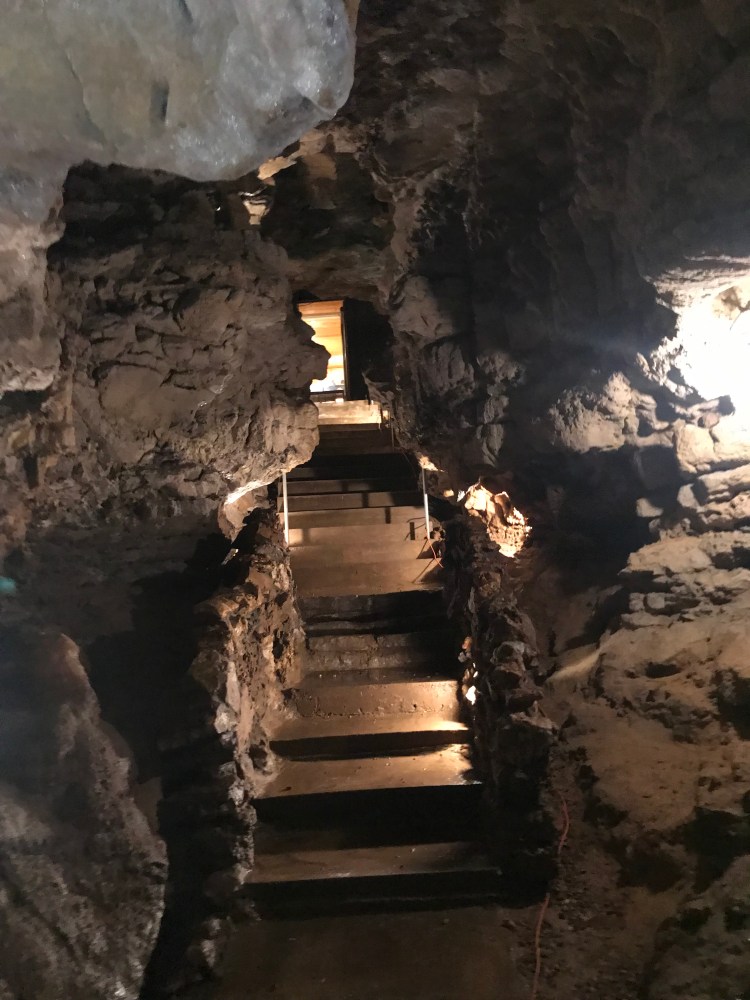 They were at the top of the staircase, at the entrance to the cave where the electric box and outlet was attached to the wall just inside the door.