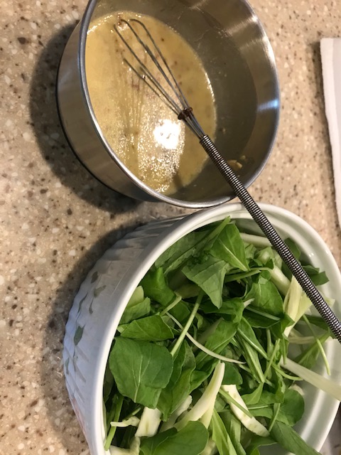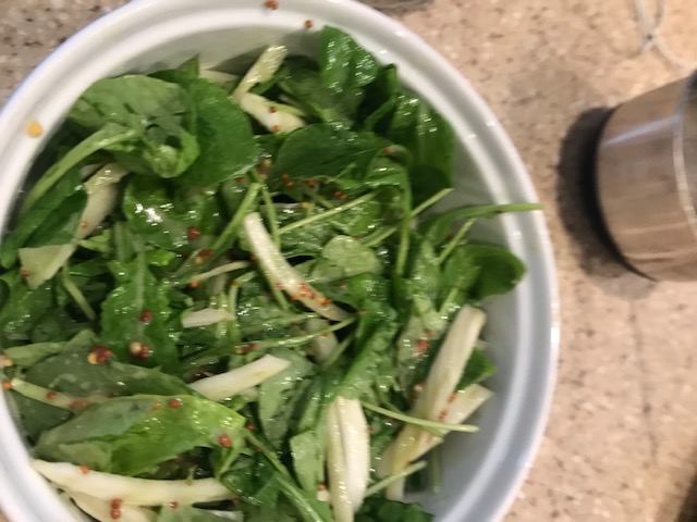 The chicken required pounding, as well as dijon and course mustard, none of which we had so those were things we needed to pick up from the grocery store. We’ve also never used fennel (despite my love of anise) in a salad. This added a new element as well. My husband is not a fan of arugula but after asking him, we stuck with the original recipe and made the salad out of the arugula and fennel, just as the recipe requires. This could be altered in the future, but we really saw no need to make changes before we tried it.