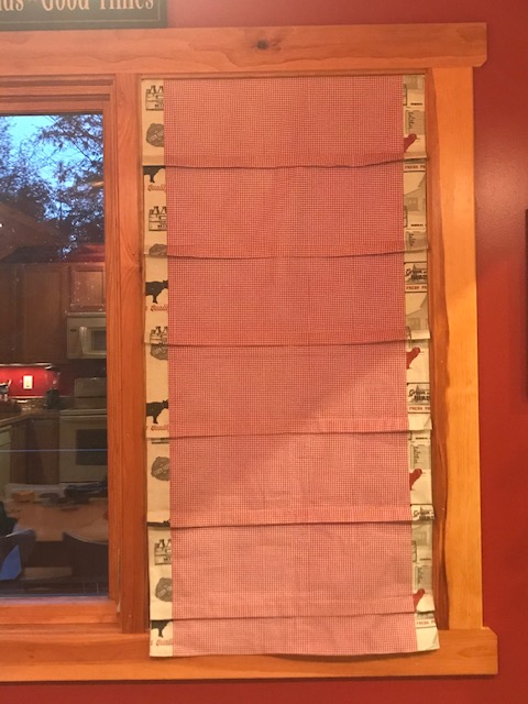 My roman shade project is starting to come to a conclusion. The first shade has been hung at our cabin on a bank of three windows. The second shade has been pleated and is ready for sewing. I have a third shade to do and hope to finish by the end of the month.