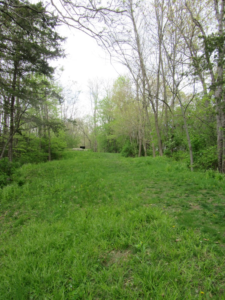 The Mississippians were platform mound builders and farmers of corn. Their way of life is described on the kiosks. They borrowed soil from one area of the forest to make the raised mound that you can clearly see when walking the trail.