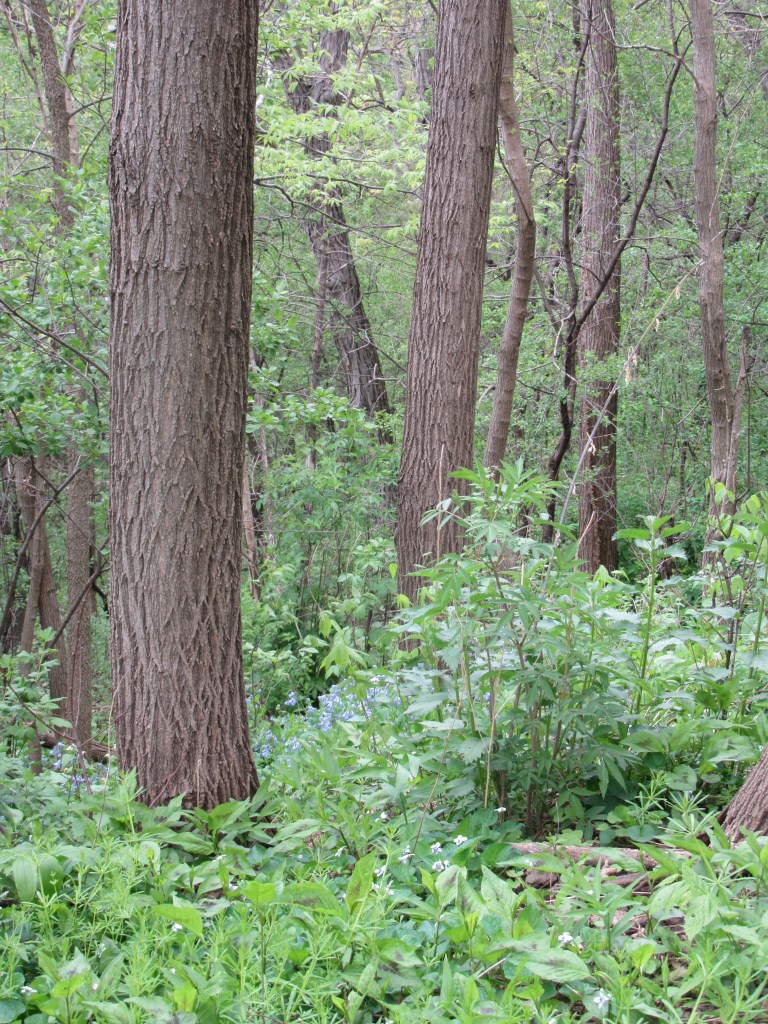 Besides having access to water and food, the area is beautiful. We saw shagbark hickory trees just staring to leaf out. As well as carpets of violets and Virginia Blue Bells.