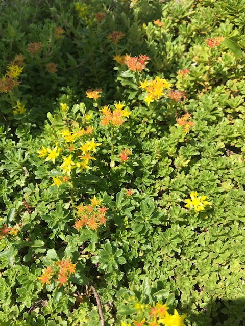 Sedum ground cover is in bloom. © Carol Labuzzetta, 2021