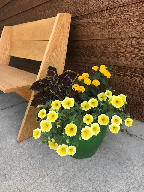 One my pots – plants courtesy of Sunset Gardens, Galesville. © Carol Labuzzetta, 2021