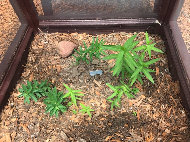 Upon returning home, I checked out yard. Finally! The season has started here! I found at least four stage one instar caterpillars – tiny guys. And, I found several eggs. The most exciting find was a caterpillar, one of the tiny ones, on a new rose milkweed plant inside the outdoor enclosure my husband made. This is a first! Hopefully, this is where I can raise some monarchs to be tagged and released in the fall – all outside!