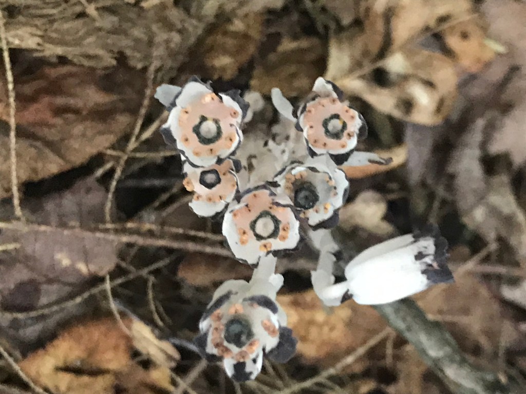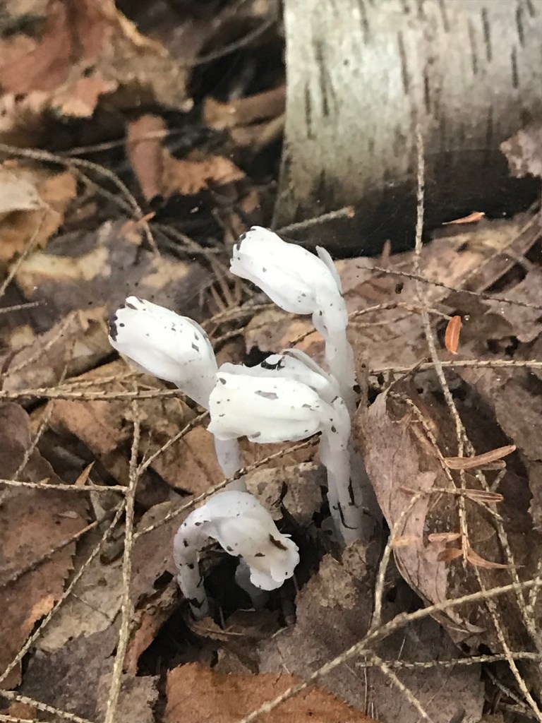 The forest service goes on to explain: “Since they cannot make their own “food,” the mysterious mycotrophic wildflowers take this symbiotic relationship between tree and fungus one-step further. Mycotrophic plants “tap” into and parasitize the hyphae of a mycorrhizal fungus by reversing the flow of carbon (derived from the host tree) and other nutrients to meet their survival needs. The unlucky fungus “feeds” the parasitic wildflower and receives nothing in return.” (U.S. Forest Service, 2021). A Wisconsin Public Radio author, Susan Knight, explains the biology of the plant well in this article published in October of 2020 near Wausau, Wisconsin – surprisingly not far from our cabin!