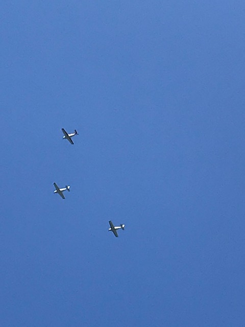 Three of over 100 planes flying in to the Oshkosh Fly-in. July 2021. © Carol Labuzzetta, 2021