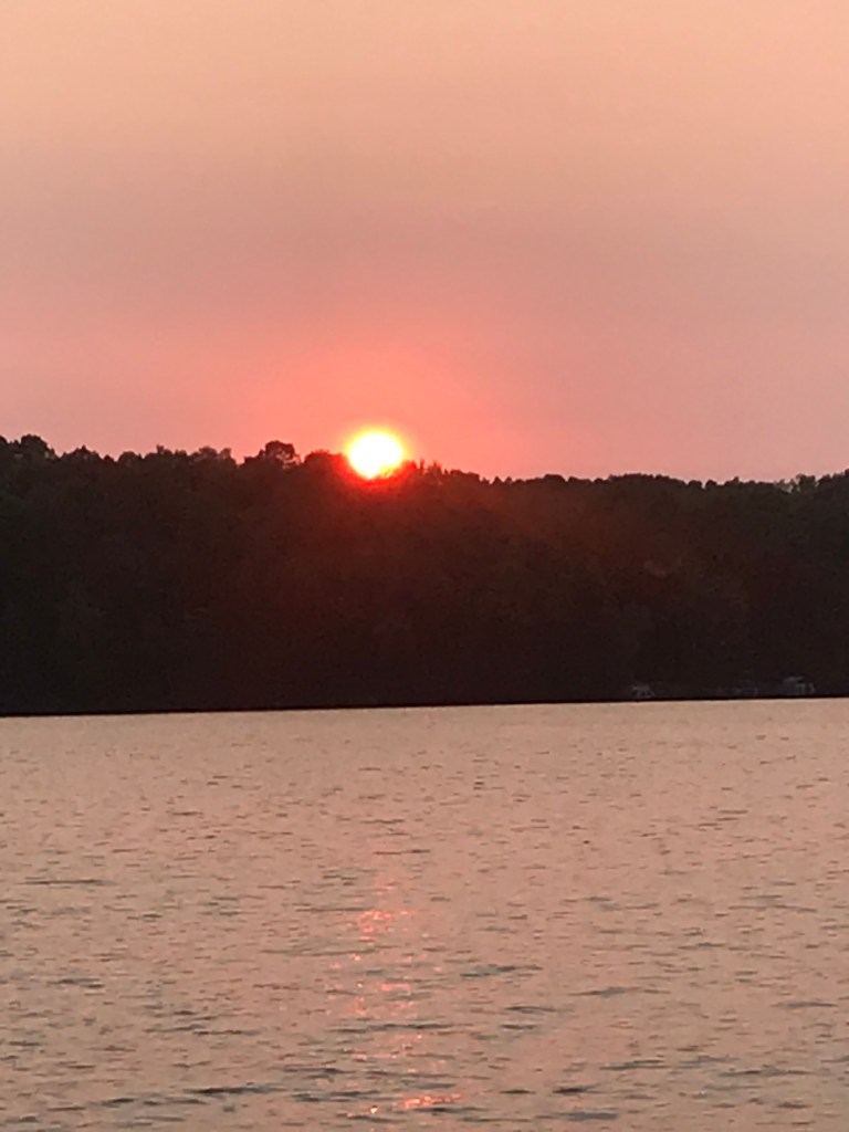 The lake turns pink at sunset. July 2021. Ā© Carol Labuzzetta, 2021.