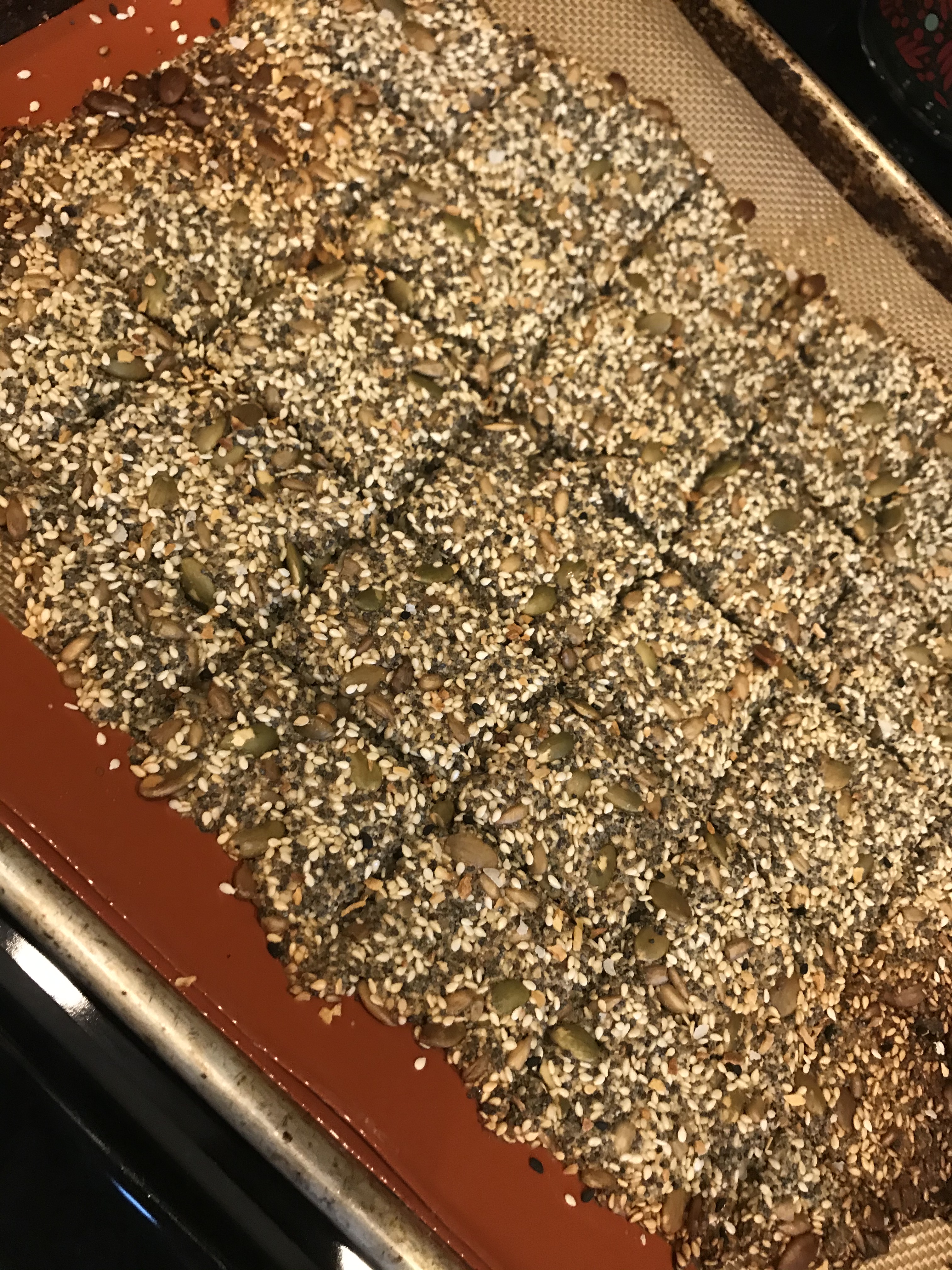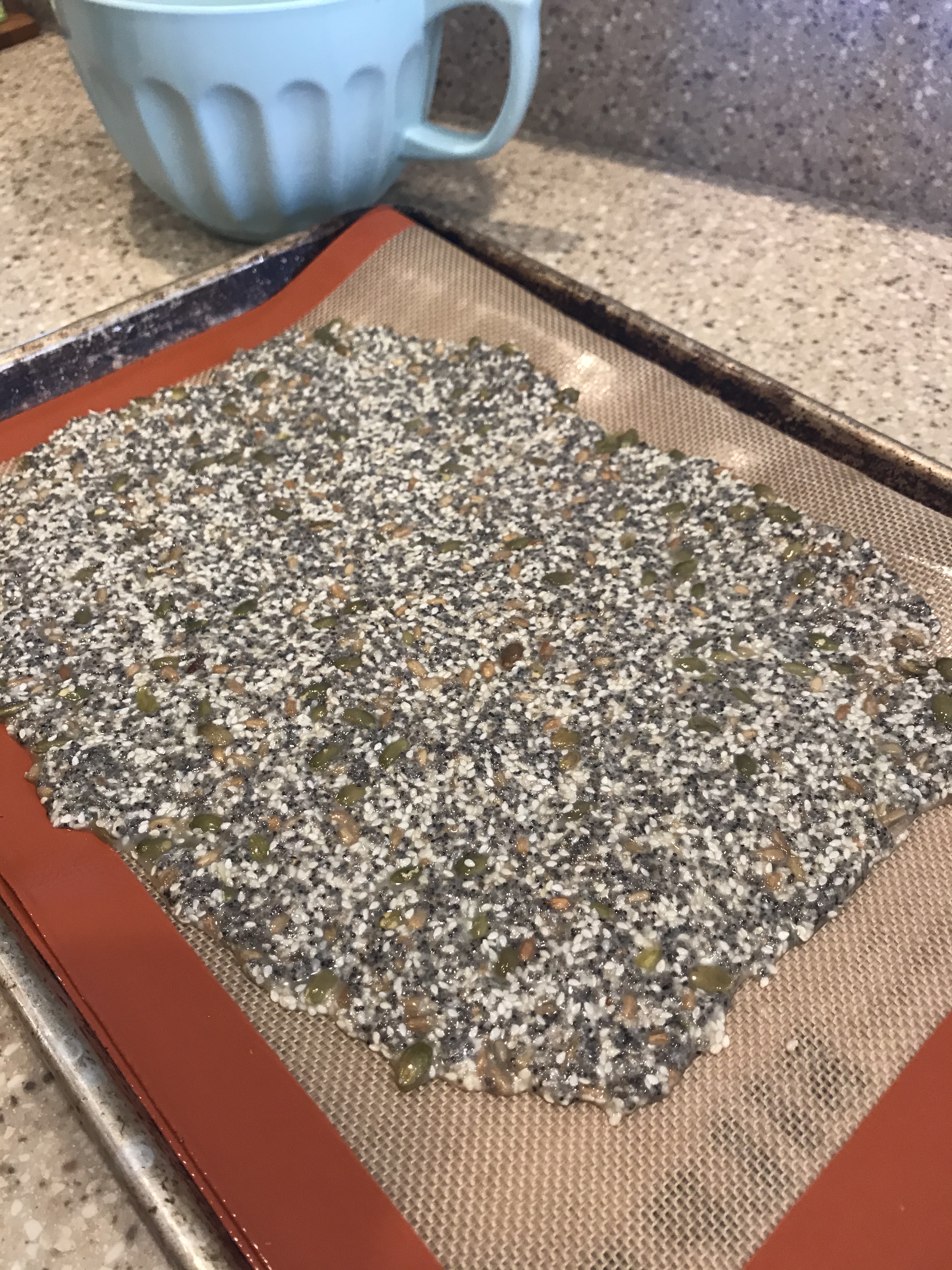 The recipe I used came from the ketodietapp.com and is called Crispy Multi-seed Keto Crackers.