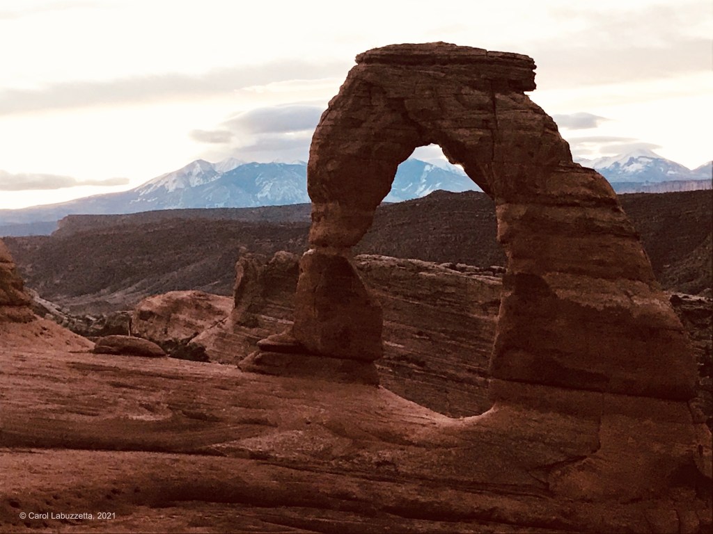 7:12 a.m. we rounded the bend and saw Delicate Arch. There were a few people already there. We found a spot, sat, and took many, many, many photographs.