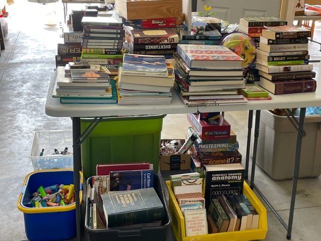 Attending garage sales takes time. And, it takes patience. On both accounts – that of the seller and the buyer. It’s taken us all week, working 8-10 hours a day to set up for our sale. We are retired. We have the time. There is something for everyone at our sale. We have four garage bays set up with “stuff” we need to get rid of before we move. There’s furniture, tools, toys, books, home dec, costumes, clothes (not a lot), bikes, photography, dishes and more! The lowest price we have is $1.00 but we have batched some things to be 5/$1.00 or 4/$1.00. Lots of this is craft stuff that I wouldn’t charge a dollar a piece for to a buyer.