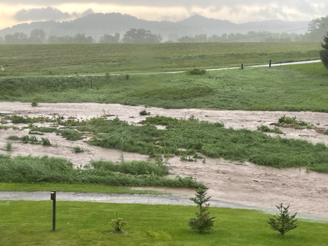 We’ve lived in this house for 16 years. During that time, a subdivision and a retention pond has been built within sight of our yard. When we first moved in, a heavy rainstorm was fairly rare, occurring only every few years. But, recently the storms have been increasing in severity and frequency. Last August, we had a storm that washed out our new driveway on a sloped lot. It was a storm in which we got seven inches of rain in a day. Two weeks ago we had another heavy rainstorm and then one again this past Monday. We are concerned about erosion on our driveway, as well as flooding of fields (crops will not grow in flooded fields), lack of drainage causing incubation of insect-borne disease, and stagnancy, as well as washing nutrients away and chemicals into the groundwater where people have wells.