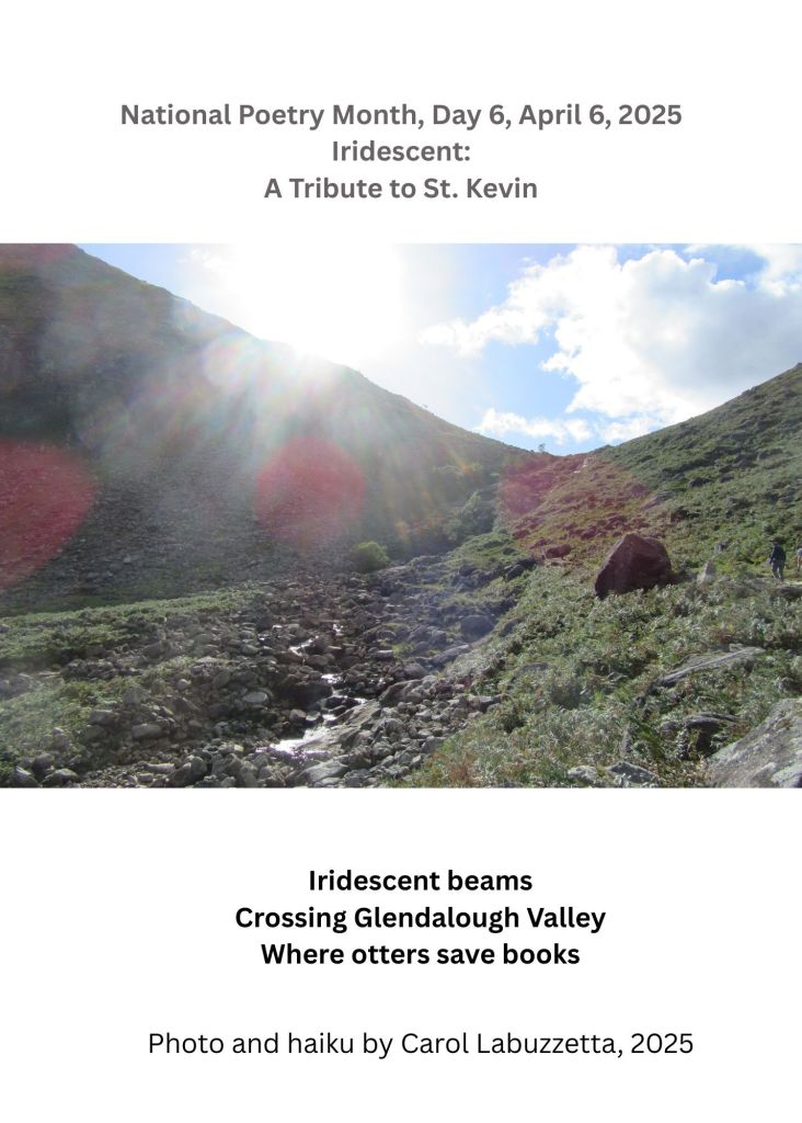 The Gledalough Valley is beautiful and inspired my haiku for today. To fully understand the haiku, you must know that it was said that a miracle of St. Kevin’s was that when his psalm book fell into the lake, it was returned to him undamaged by an otter.