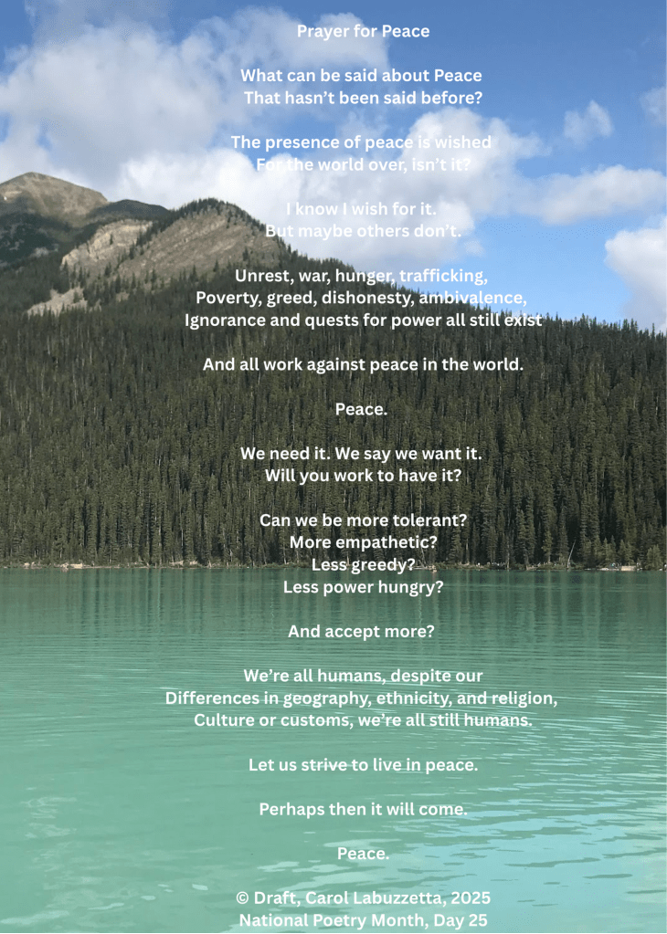 Today’s prompt from the Verse of Ages Poetry Prompts for April 2025 is peace.