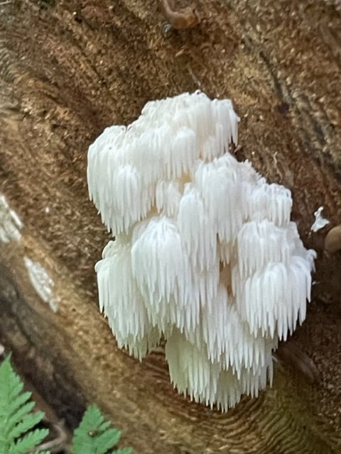 We lost a huge hemlock tree in a late winter storm, and had an arborist we know come to cut it into logs. Hemlock is a species of tree the varnished reshi grow on. I’m going to keep a lookout for that and more Bear’s Head Tooth.