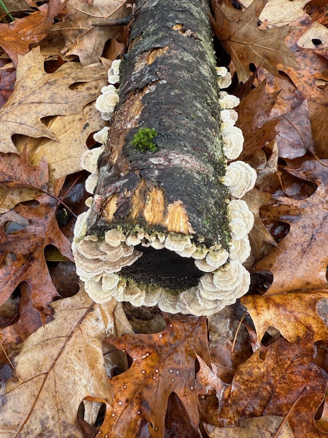 Love that ring of mushrooms on the log — a poem waiting to be written!