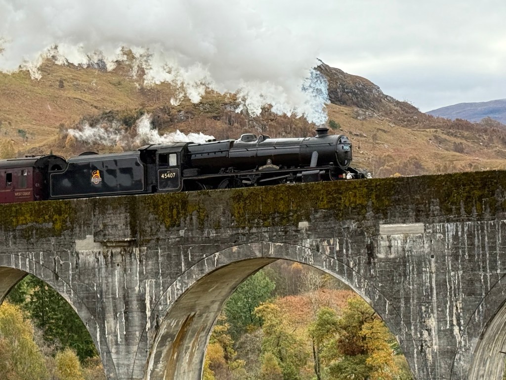 Jacobite Steam Train crossing the Glenfinnan Viaduct in the Scottish Highlands. © Carol Labuzzetta, 2025.