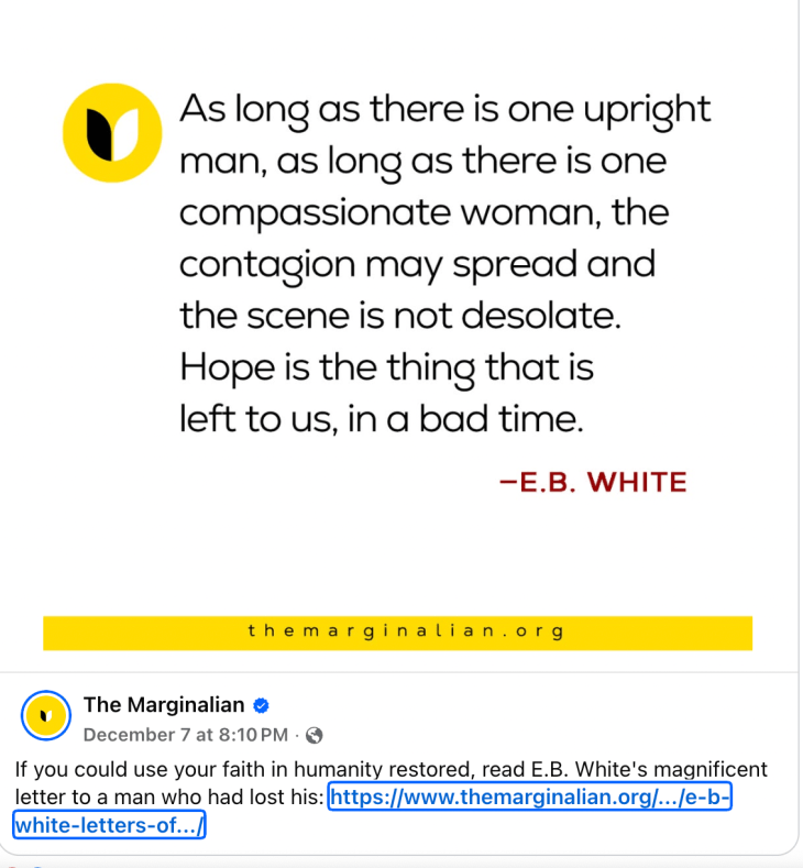 When you find a favorite writer who also wrote poems, it’s like a light bulb moment! This is what happened earlier this week when I saw a quote by EB White from a letter he had written to a despondent person. It was on social media. And in these times, I thought it was very apropos to share.