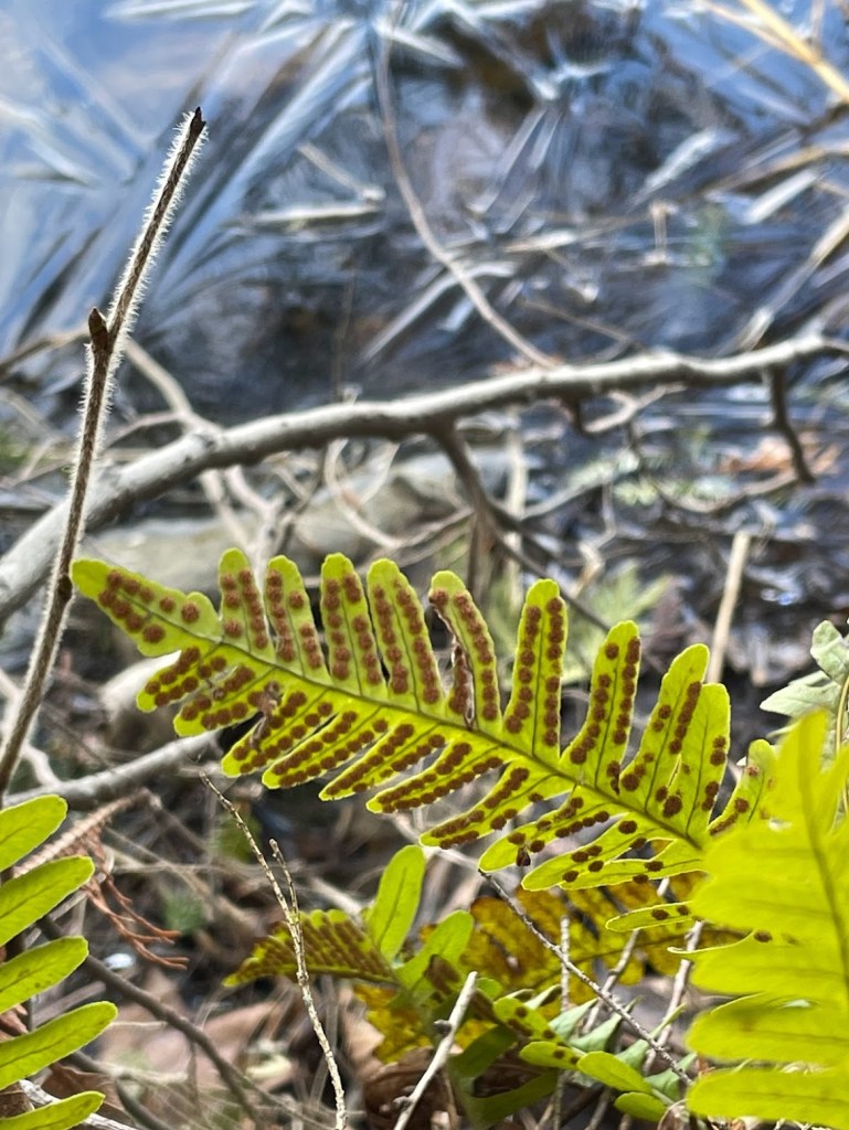 Common Polypody Fern and sori (spore-producing structures) in our woods.