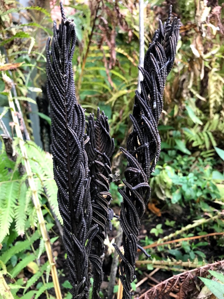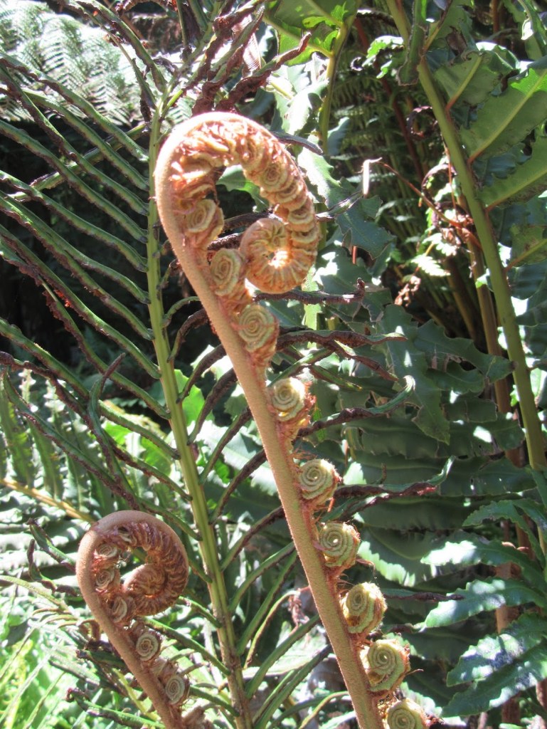 Fiddlehead Fern with curled fronds, possibly Sadleria species. Seen in California.