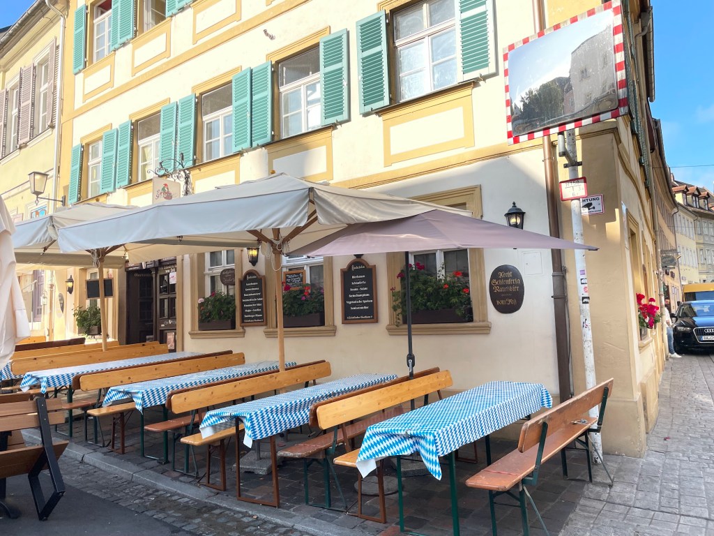 Bamberg restaurant getting ready for lunch crowd. © Carol Labuzzetta, 2023.