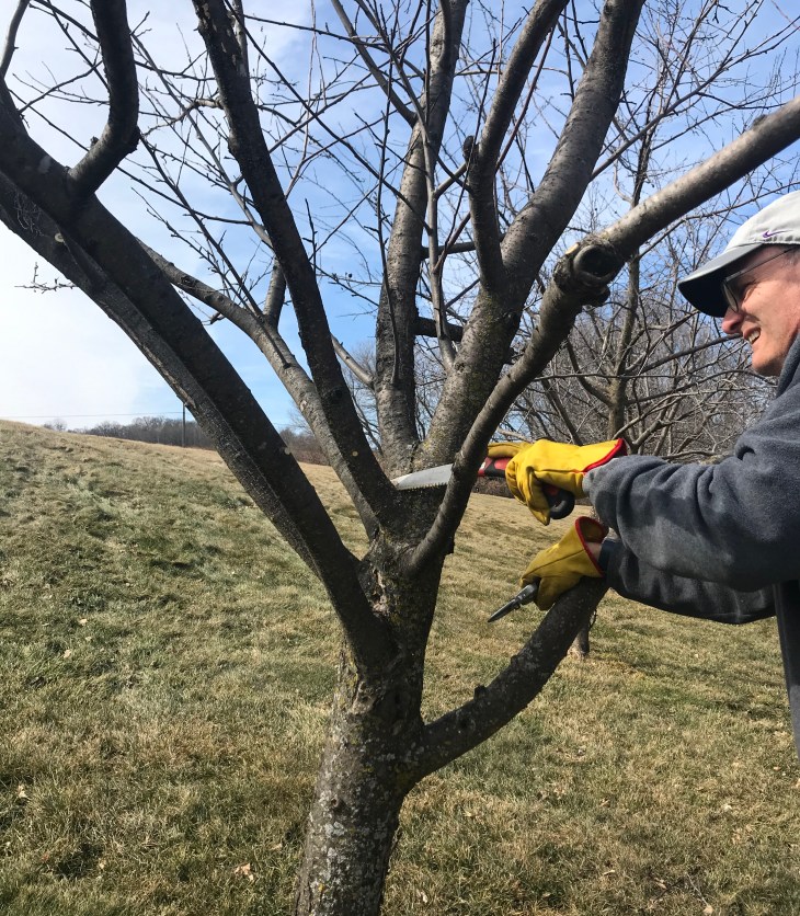 Today we pruned the trees in our home fruit orchard. Thirty trees altogether, there are…
