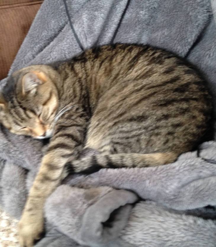 It only took a month of being together to be comfortable cuddling. The cat is…