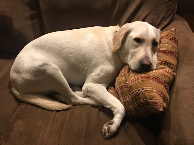 Who will win this round? Molly, our 80 pound, yellow Labrador Retriever on the home…